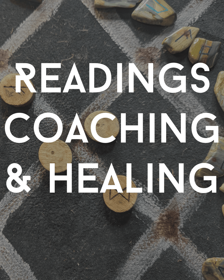 In-Person Services: Runic Divination, Shamanic Readings, Spirit-Informed Coaching, Ritual Cleansing and Blessing (persons and spaces), Mediumship/Contact with the Dead, Energy Movement and Balancing (persons and spaces), Energetic Bond Removal, Creation of Custom Tools (Runes, Altar/Divination Skins, Carved Wooden Statues, Wooden Pendants), Energy Extraction, Bloodwalking, Runic Thread Work (includes runic message from the Nornir, watercolor representation of the reading and chant/verbal calling), Meditation and Guided Meditation, Sigil Creation, Rune Workshops, Officiation of Legal Marriage in the state of Utah.